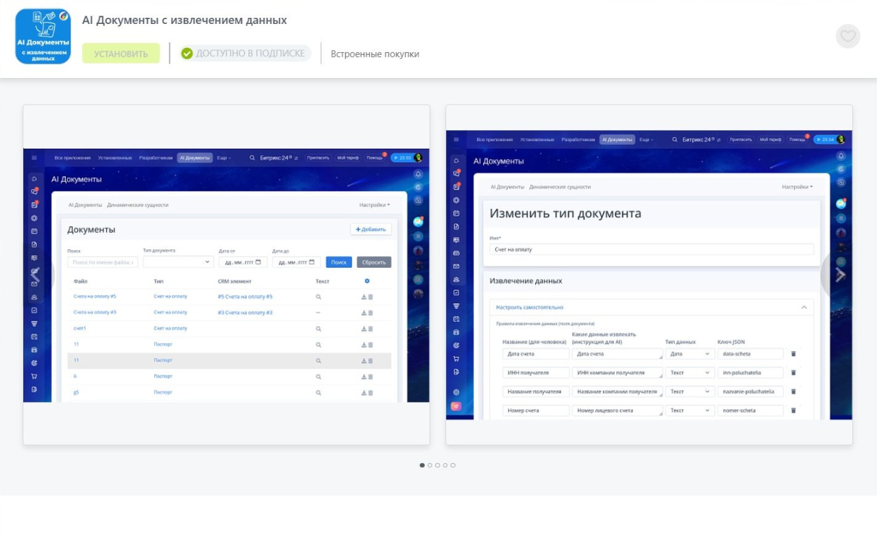 Решение автоматизирует извлечение структурированных данных из любых документов, экономя время и снижая ошибки при обработке в Битрикс24.