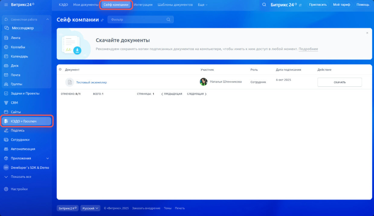 Где посмотреть и скачать подписанные документы в Битрикс24 КЭДО