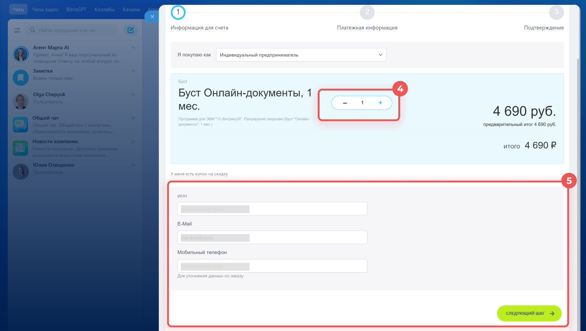 4–5. Укажите количество бустов, оформите и оплатите заказ.