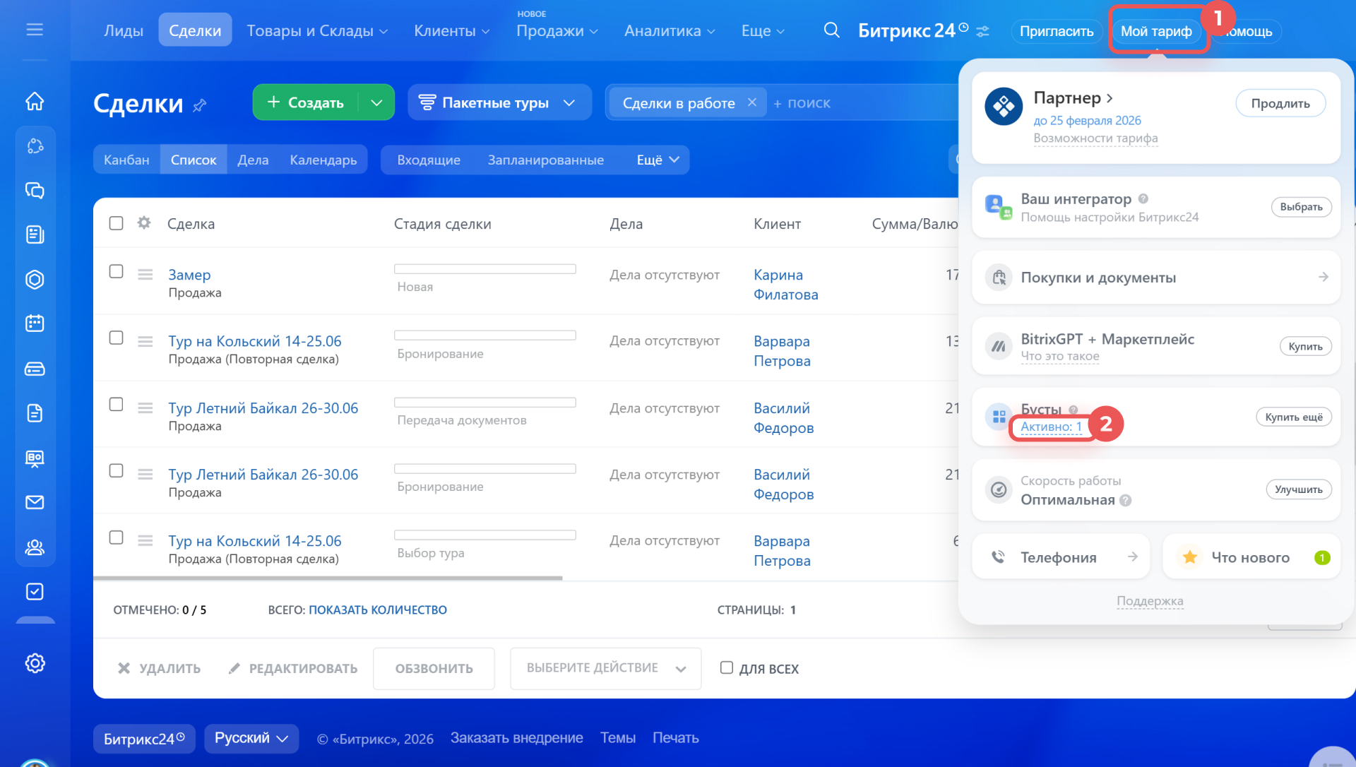 Какие бусты доступны в Битрикс24
