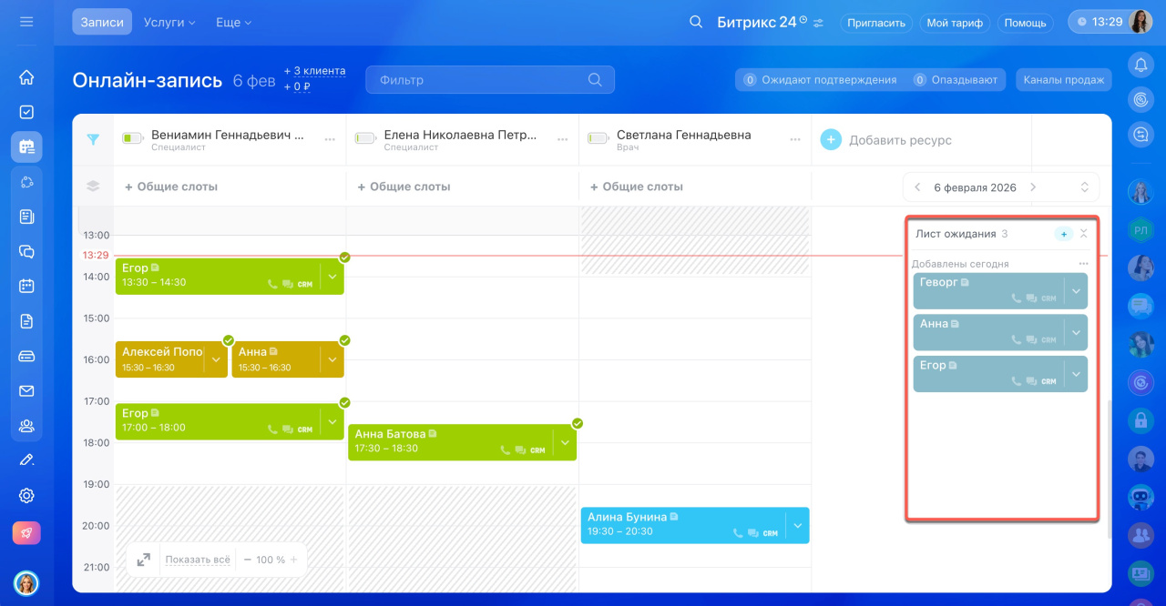 Если все время занято, добавьте клиента в лист ожидания. Когда кто-то отменяет запись, менеджер может сразу предложить освободившееся время тем, кто заранее оставил заявку и ждет своей очереди. Это помогает избежать пустых окон в расписании и удерживать клиентов.