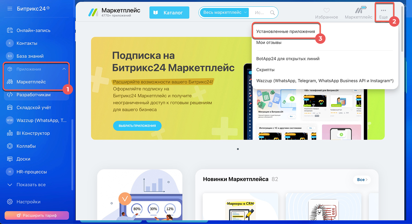 1. Перейдите в раздел Приложения > Маркетплейс.