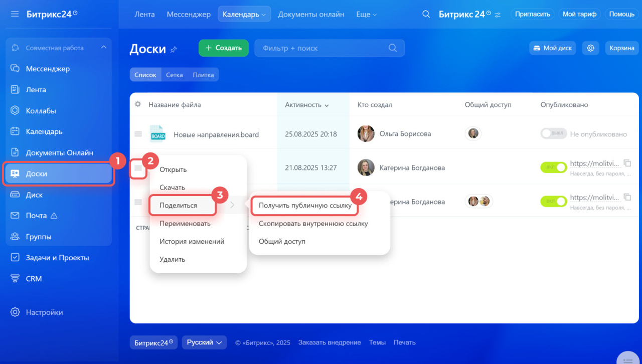 Как настроить доступ к доскам в Битрикс24