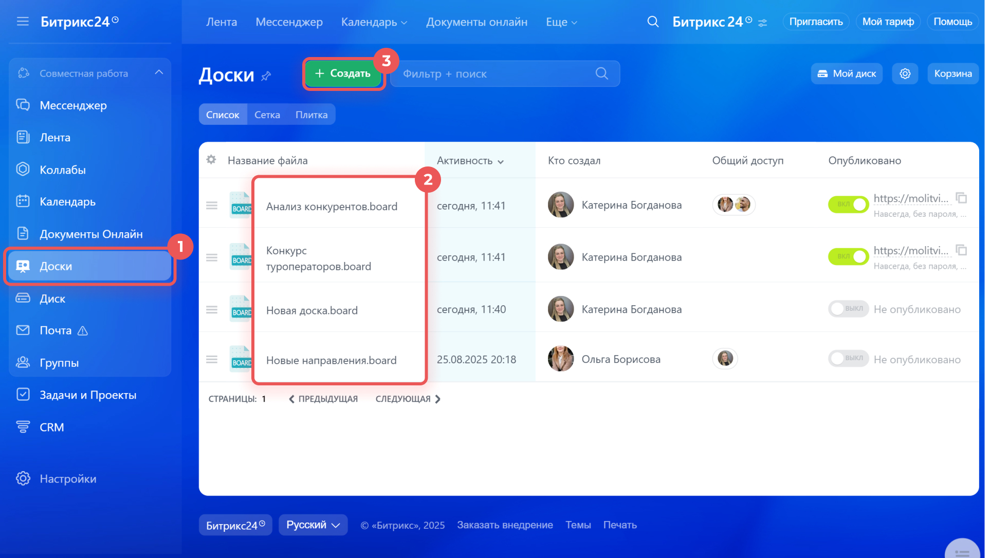 - Доски Битрикс24 — это пространство для совместной работы. На одной доске команда может собирать идеи, обсуждать макеты, планировать презентации и визуализировать процессы — без перехода в сторонние сервисы.