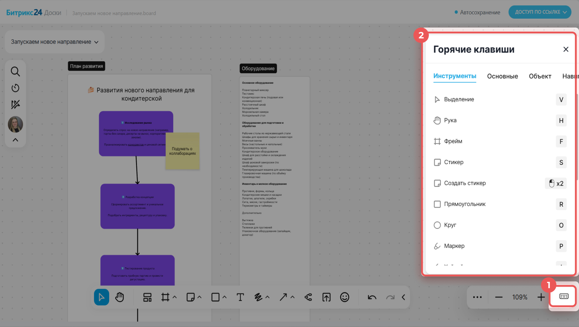 Горячие клавиши делают работу с доской более удобной. Нажмите на значок
