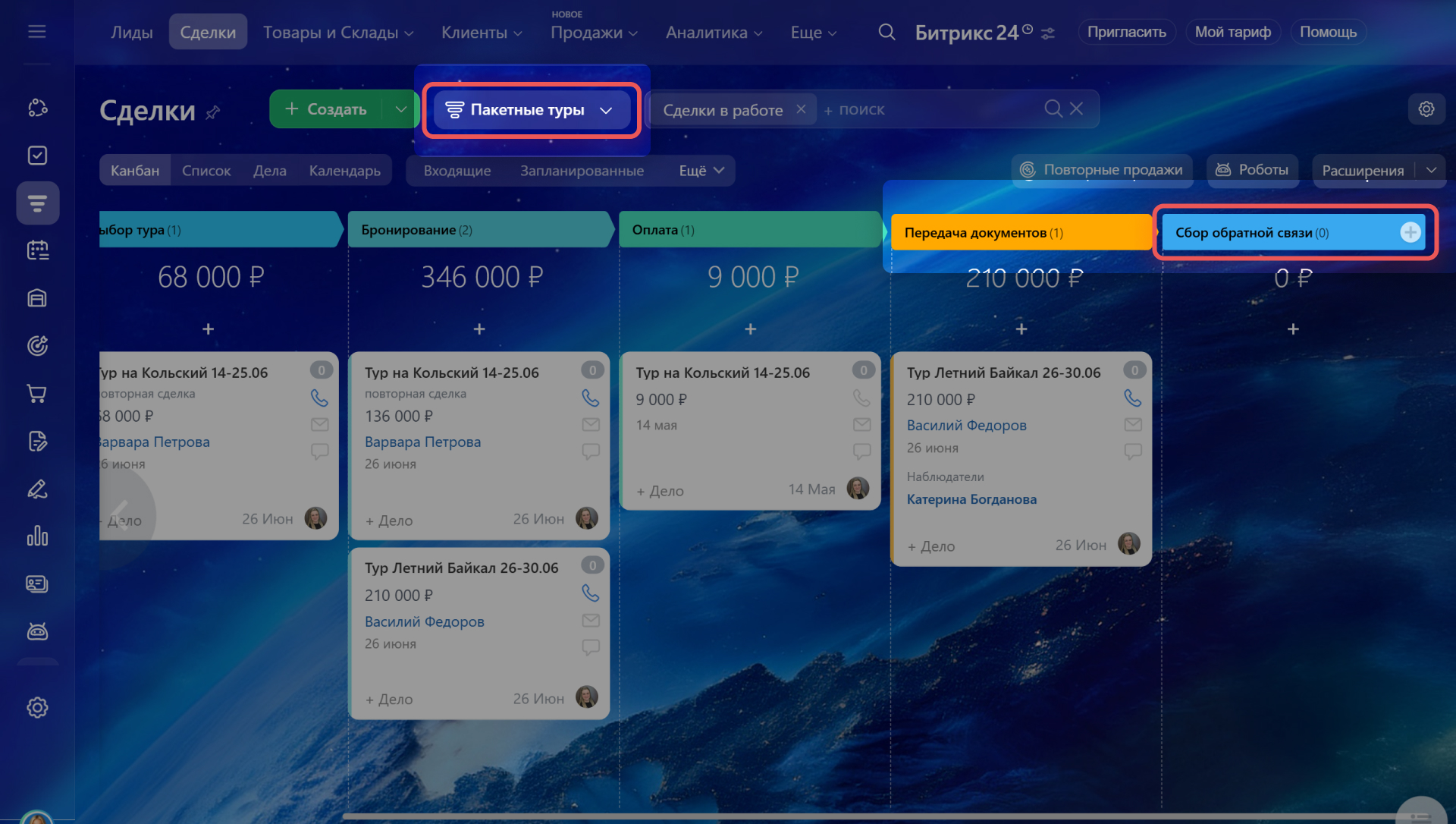 - создавать и настраивать воронки продаж и отдельные стадии,