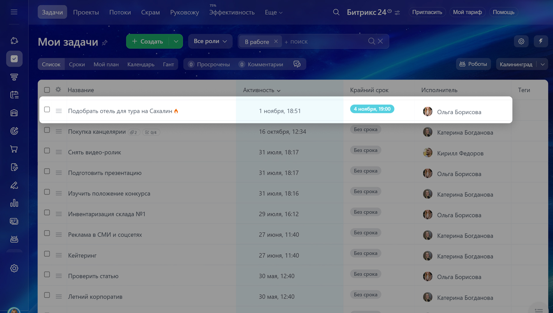Задачи. С персональным помощником руководителю удобно следить за процессом, а команде — держать дела в порядке. Например: