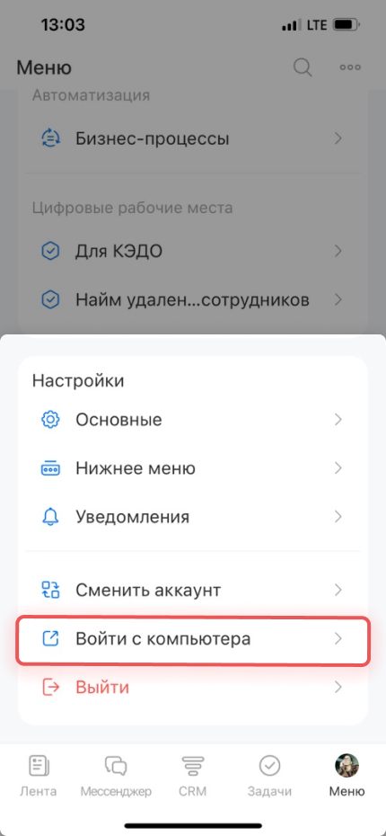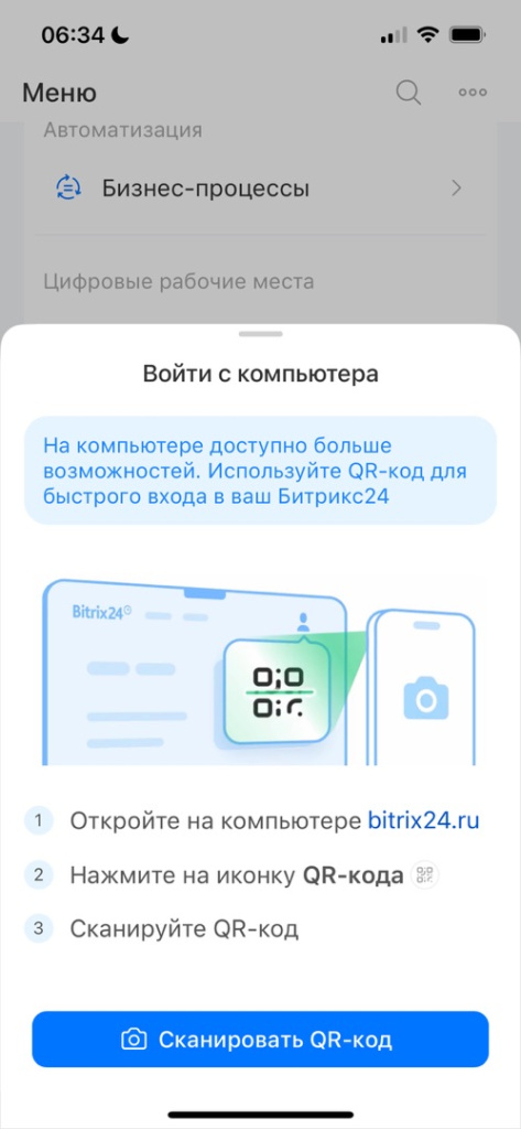 Войти с компьютера. Вы можете быстро перейти из мобильной версии в Битрикс24 на компьютере. Не нужно вводить логин и пароль вручную — авторизация происходит мгновенно.