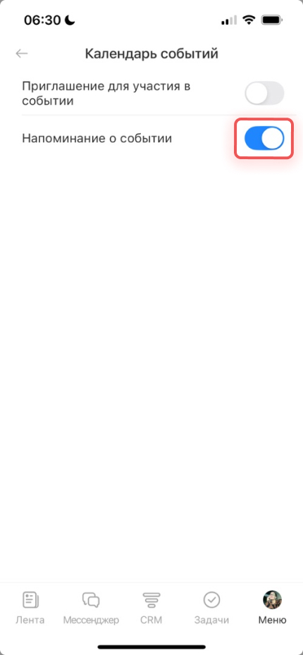 Уведомления. Настройте, какие уведомления вы хотите получать в мобильном приложении. Например, включите Умный режим, чтобы не получать уведомления на телефон, если вы работаете в Битрикс24 на компьютере.