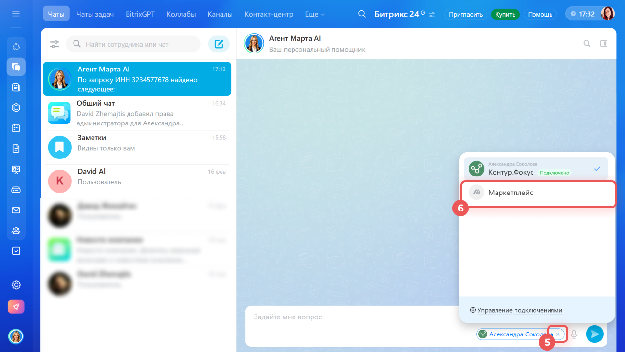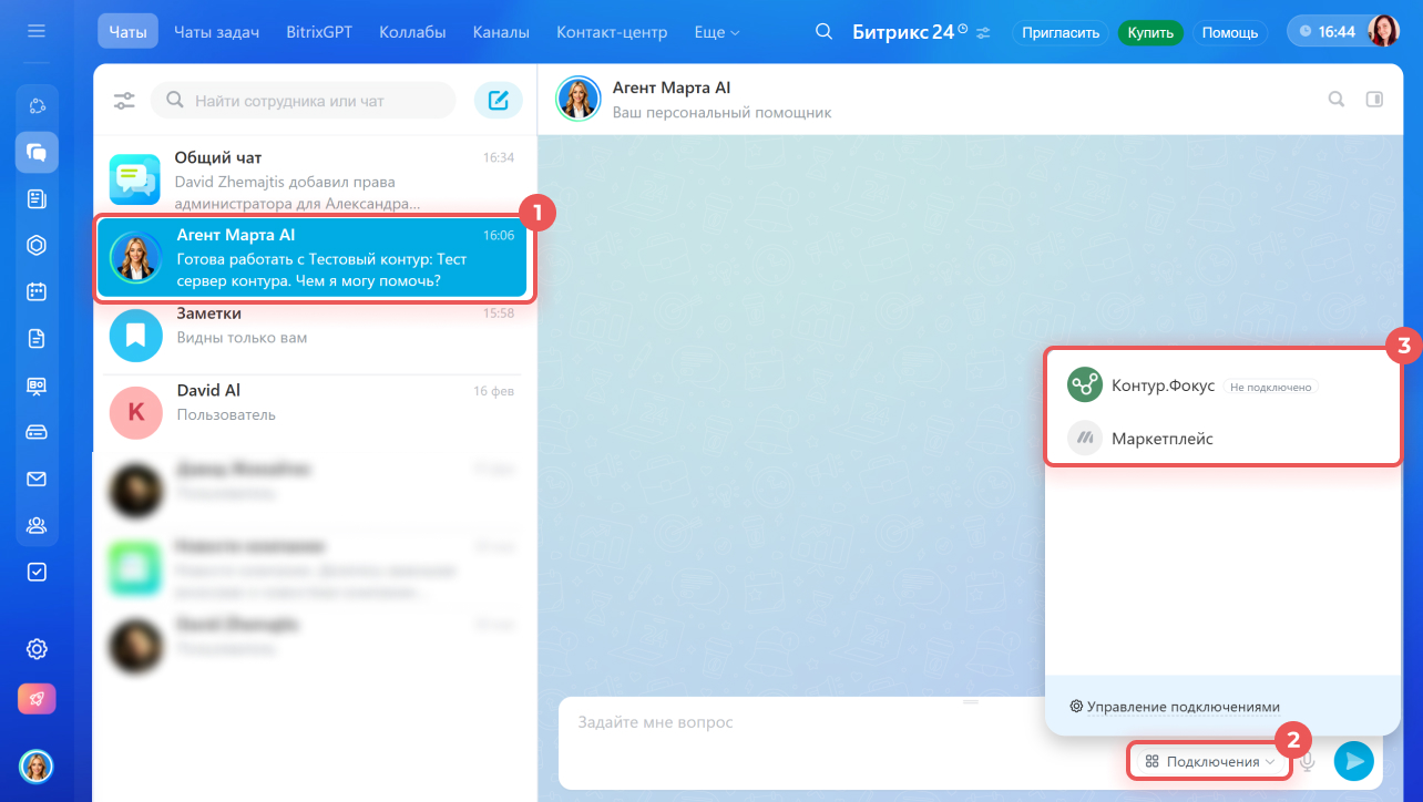 1. Откройте чат с Агентом Марта AI или другим AI-агентом.
