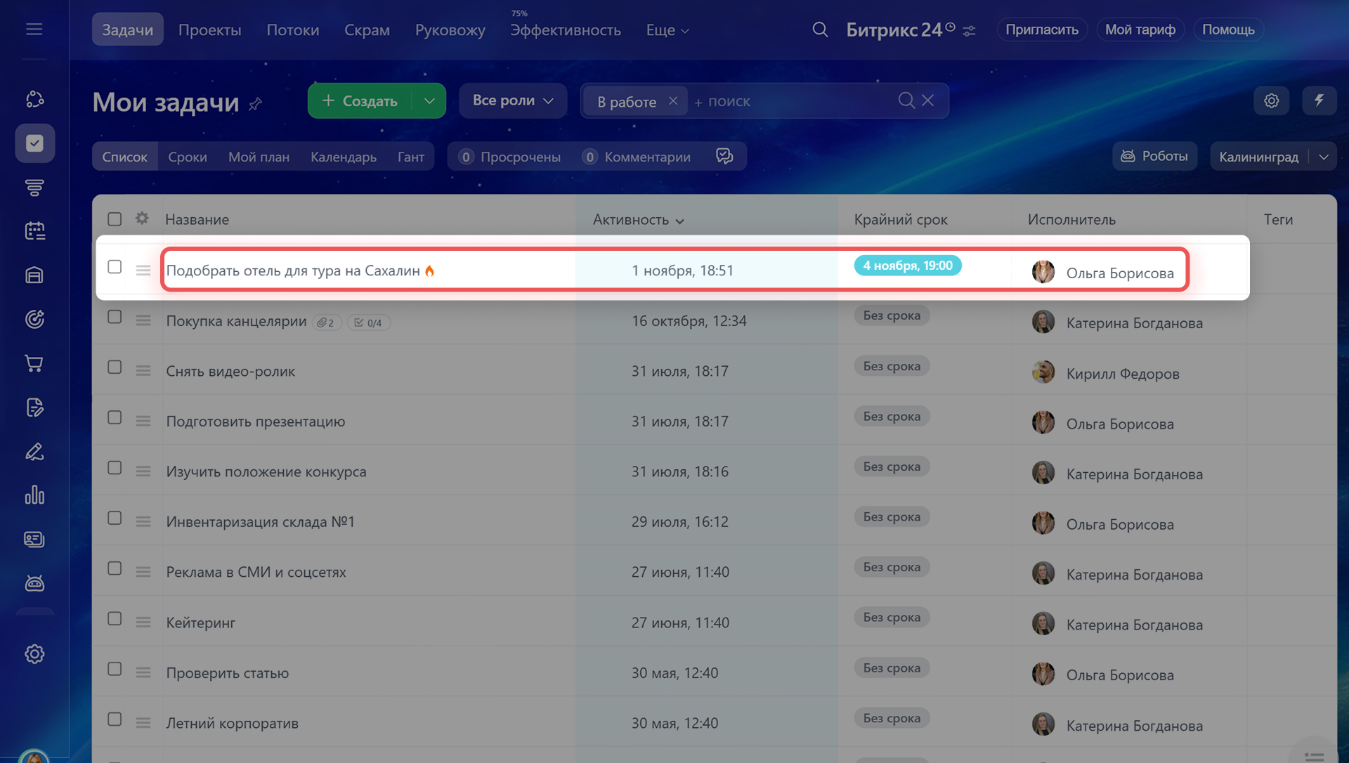 Например, вы сможете попросить ChatGPT создать сделку или поставить задачу. AI-ассистент выполняет действия в Битрикс24 только по команде сотрудника и с учетом прав доступа — все процессы останутся под контролем.