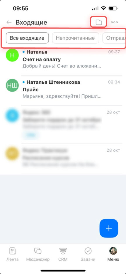 Отсортировать. Можно фильтровать письма по статусам: Все входящие, Непрочитанные, Отправленные. Например, можно быстро перейти во вкладку Непрочитанные, чтобы ответить на новые письма. Для этого используйте кнопки вверху экрана.