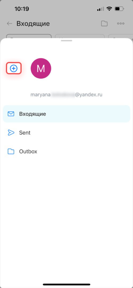 Чтобы подключить еще один почтовый ящик — нажмите на значок