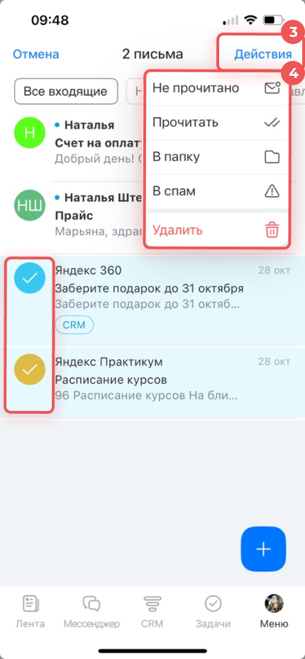 Управлять письмами. Вы можете работать сразу с несколькими письмами — например, отметить их прочитанными или удалить. Это удобно, если хотите быстро навести порядок в почте и отметить письма, с которыми уже поработали.