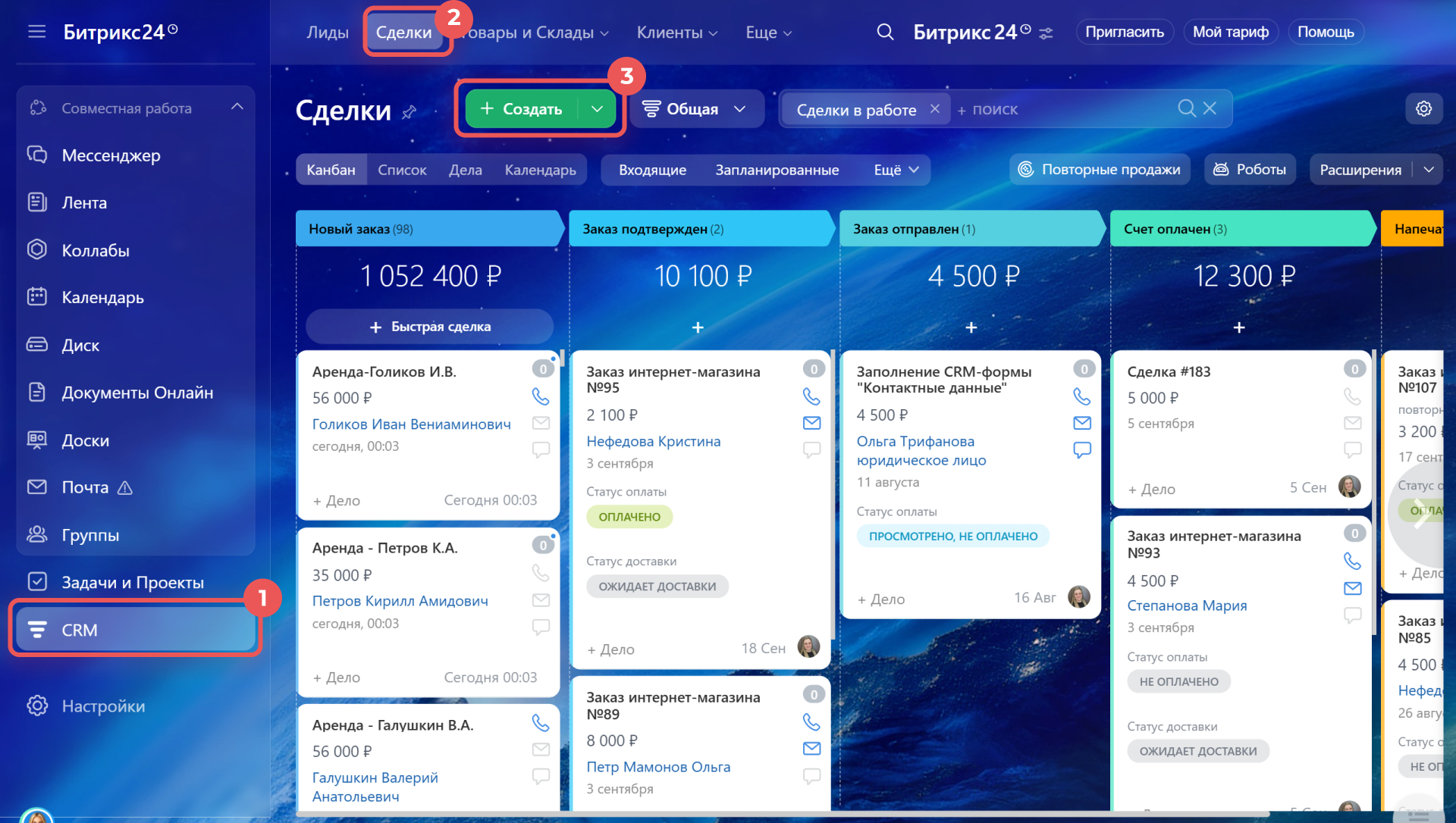 - Регулярные сделки доступны не на всех тарифах. Настроить их могут администратор Битрикс24 или сотрудник с доступом к созданию и изменению сделок.