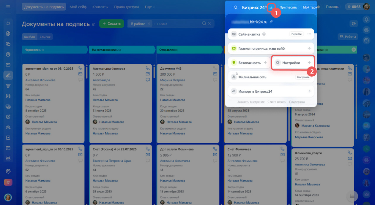 1–2. Перейдите в виджет компании и нажмите Настройки.
