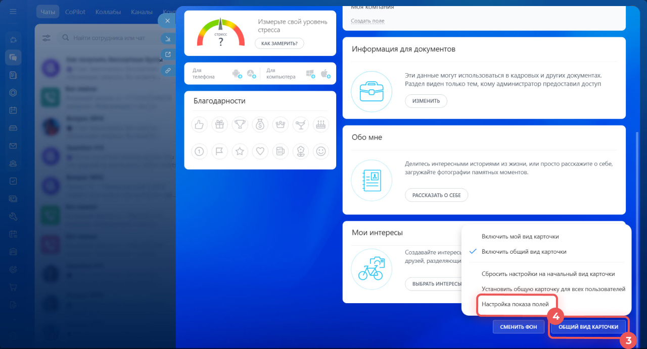 3–4. Нажмите Общий вид карточки > Настройки показа полей.