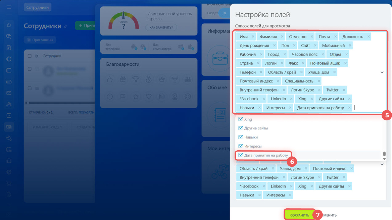 5–7. Откройте список полей для просмотра и поставьте галочку рядом с нужным полем. Сохраните изменения.