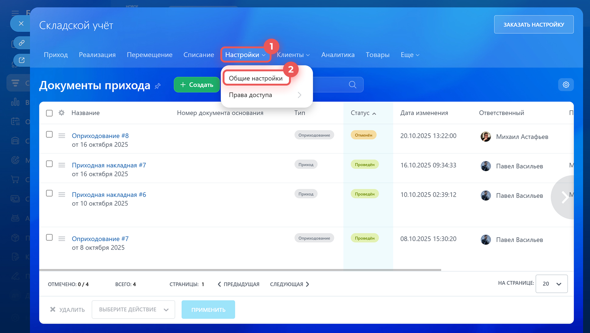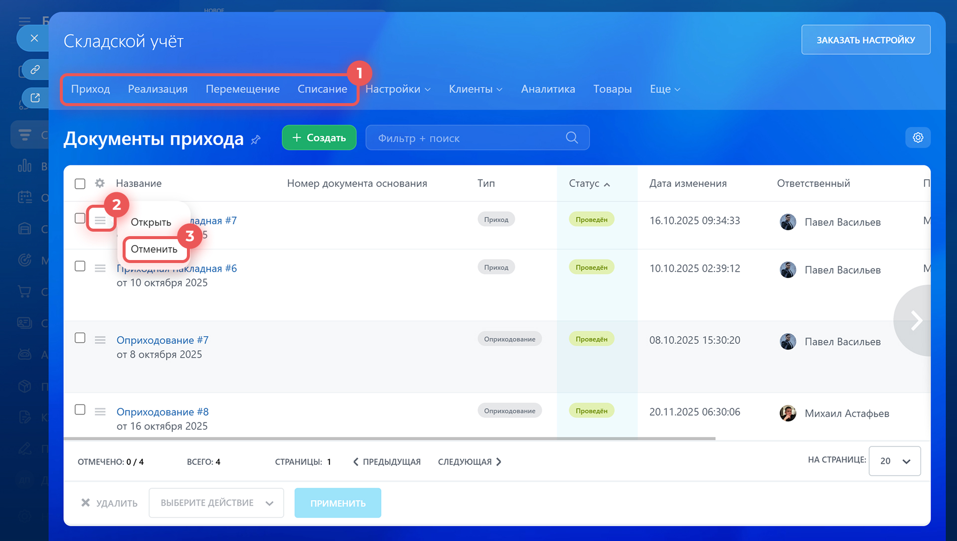 Как отменить проведенные документы складского учета