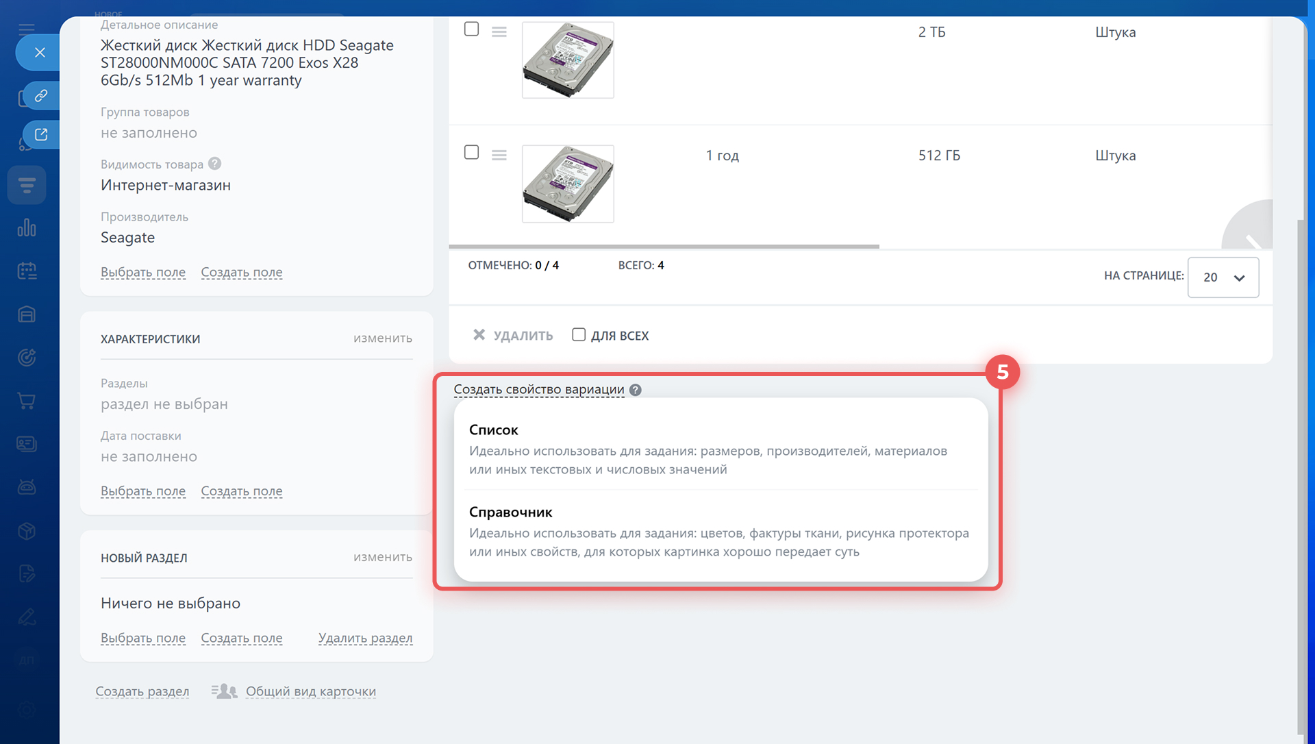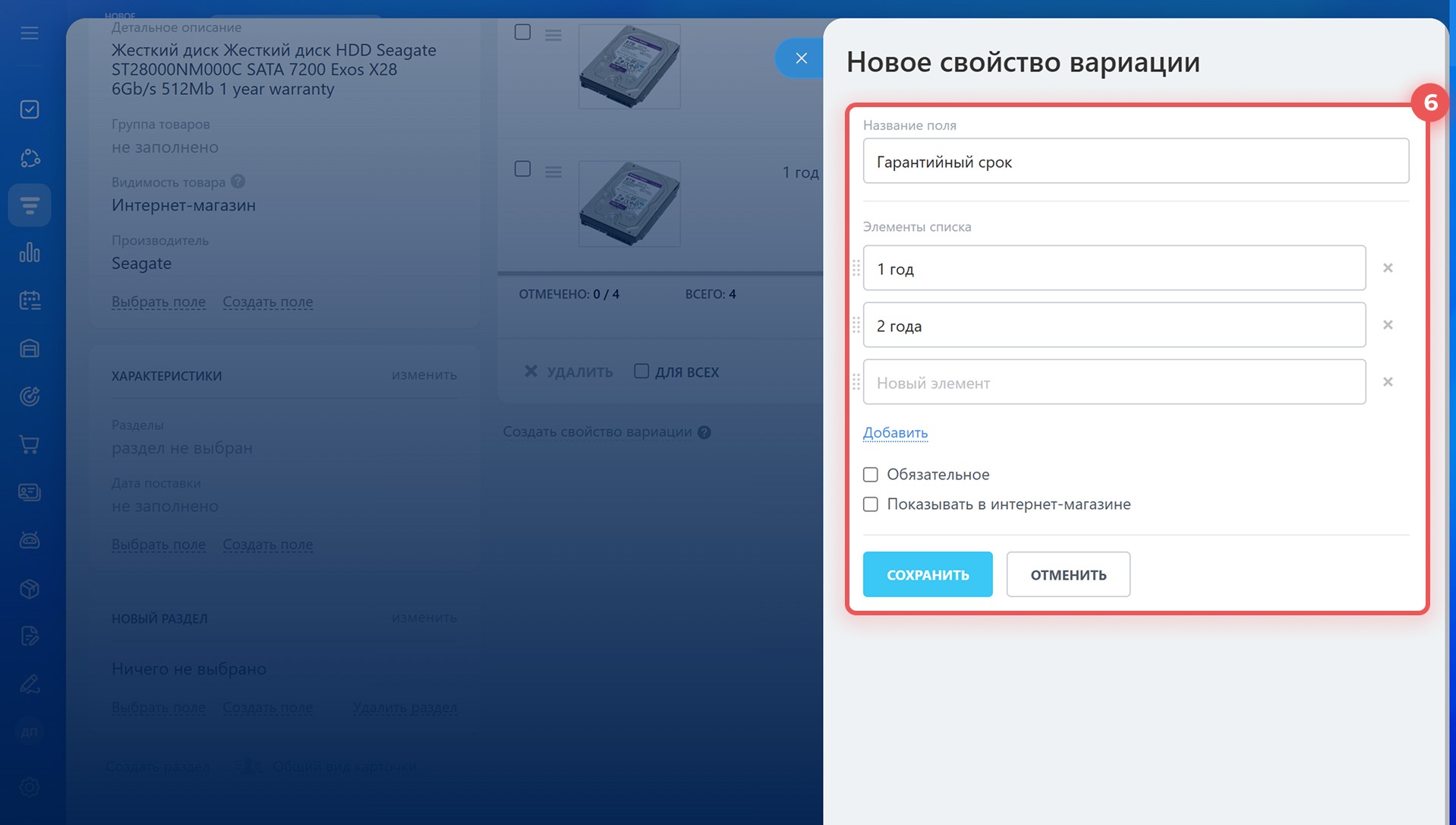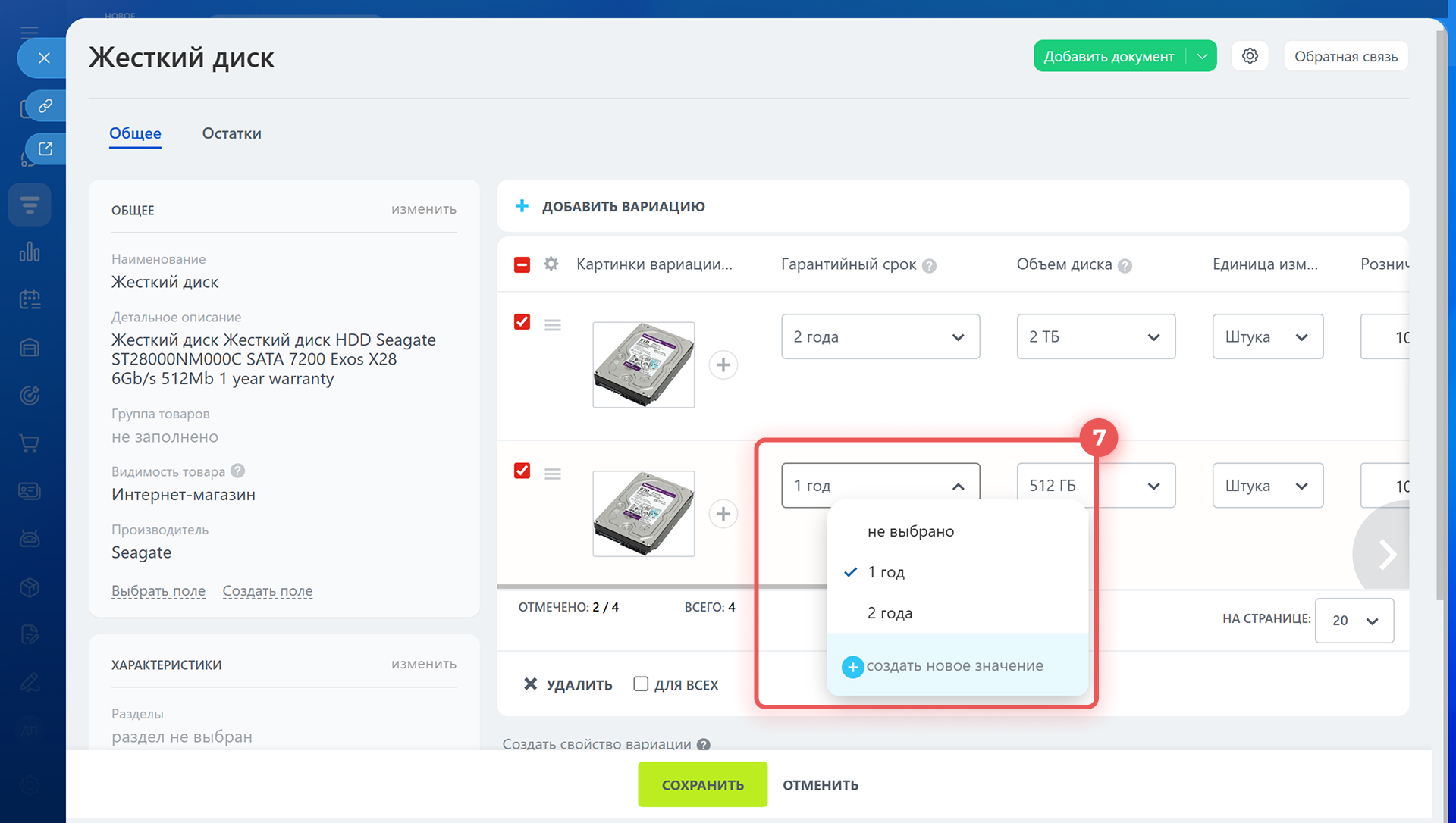 7. Добавьте новые свойства к вариациям товаров.