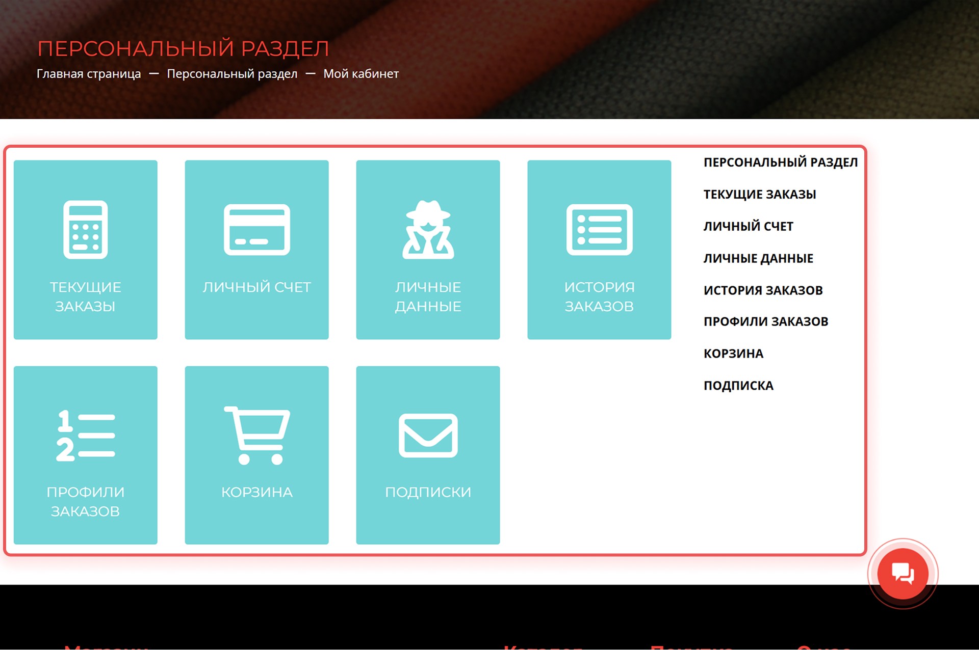 Персональный раздел в магазине
