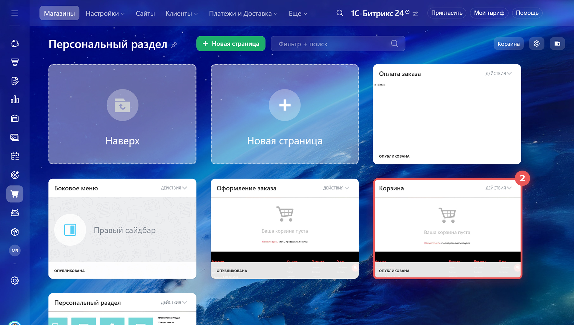 2. Откройте страницу Корзина.