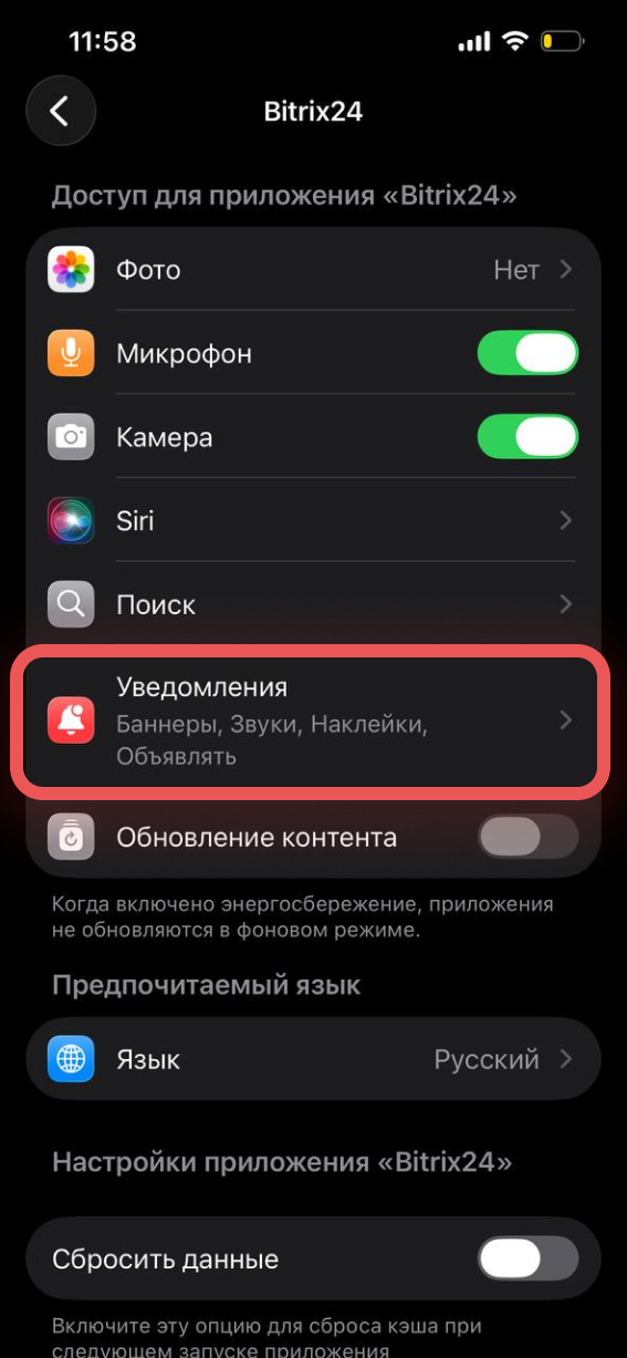 После этого уведомления от Битрикс24 будут приходить на iPhone в выбранном формате.