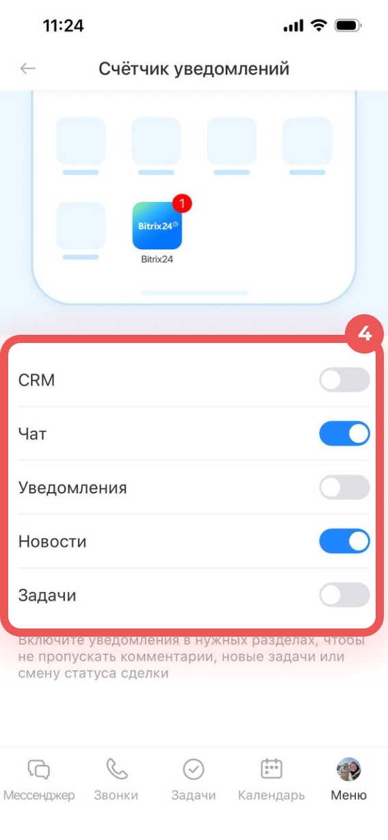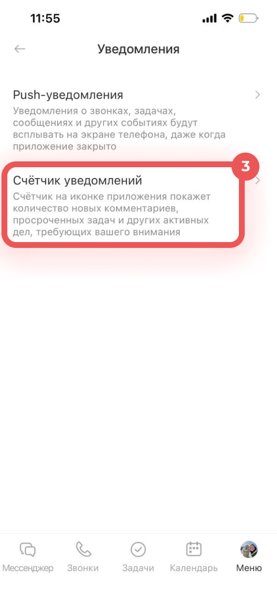 Счетчик и push-уведомления работают независимо: можно получать уведомления на экран, но не показывать счетчик на иконке — и наоборот.