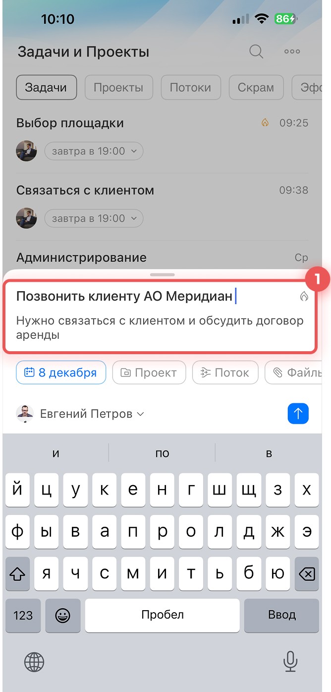- Создать задачу можно в быстрой или полной форме: в полной доступны дополнительные инструменты.