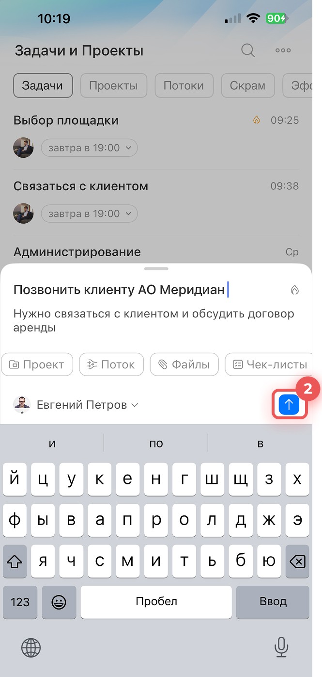 . Задача появится в списке в разделе Задачи и проекты.