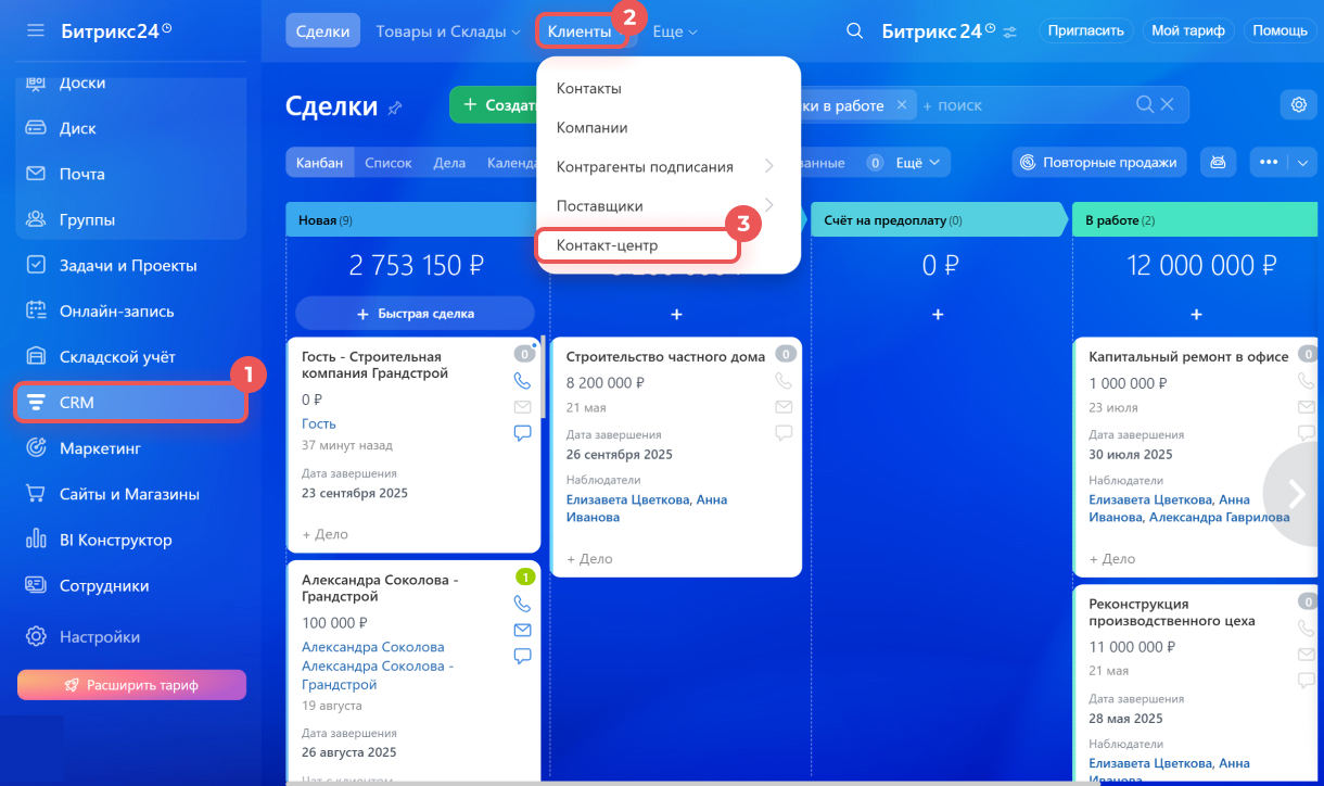 Телефония в Битрикс24 позволяет звонить клиентам прямо из CRM, записывать разговоры и хранить всю историю общения в одном месте.