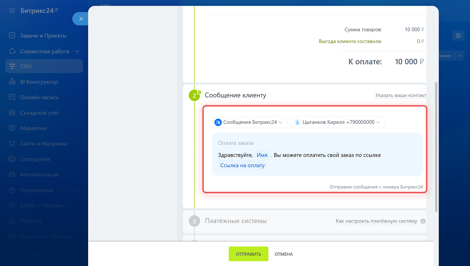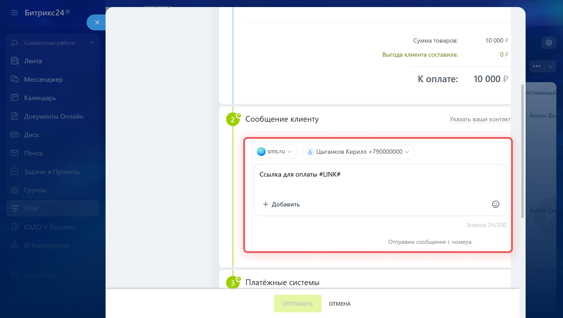 Центр продаж помогает принимать оплату от клиентов и фиксировать ее в CRM. В статье собрали ответы на частые вопросы про сообщения клиентам, смену статуса оплаты и чеки.