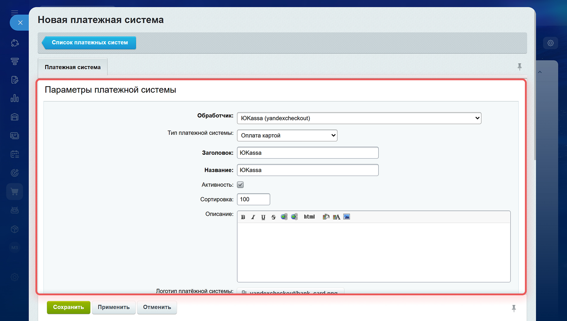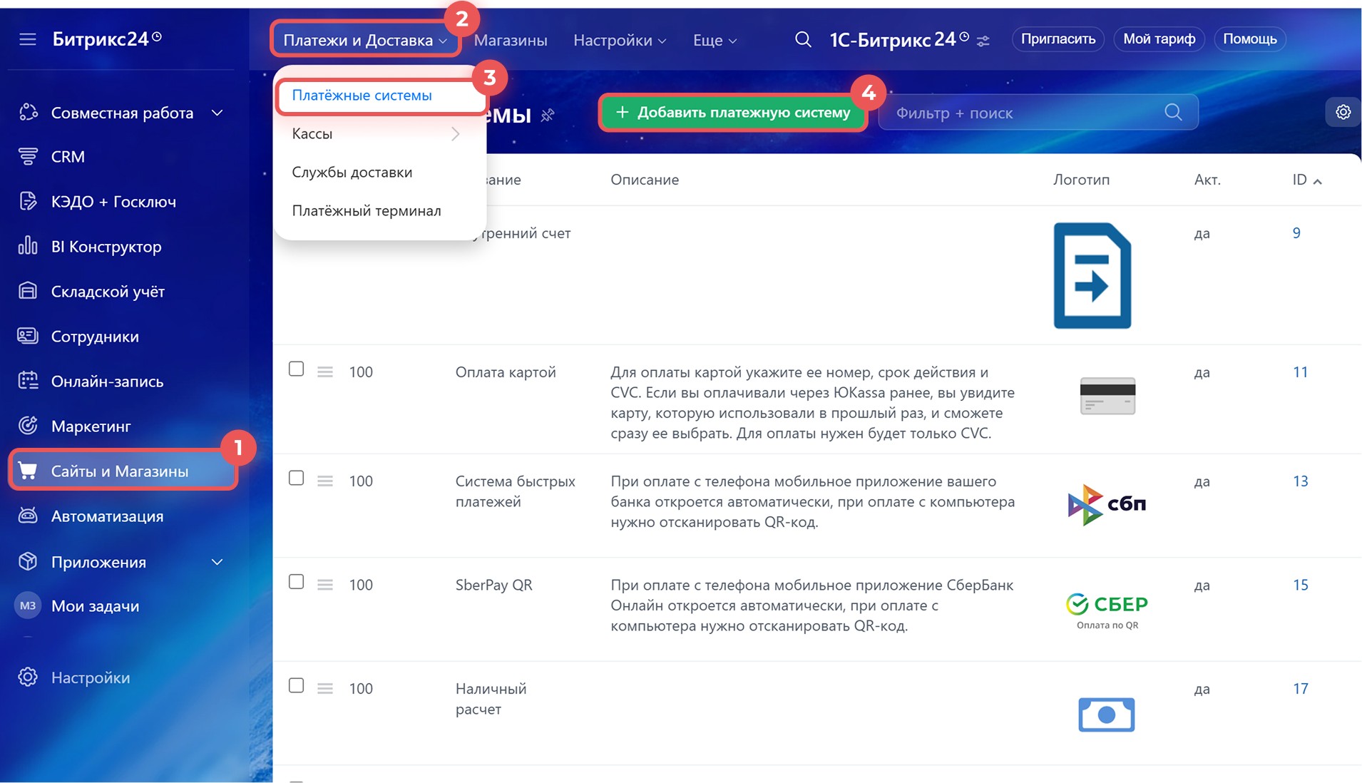 Чтобы не менять статус оплаты в сделке вручную, можно настроить уведомления от платежного сервиса. Они сообщают Битрикс24, что платеж прошел успешно. Ниже разберем настройки для ЮKassa, Сбербанка и Robokassa.