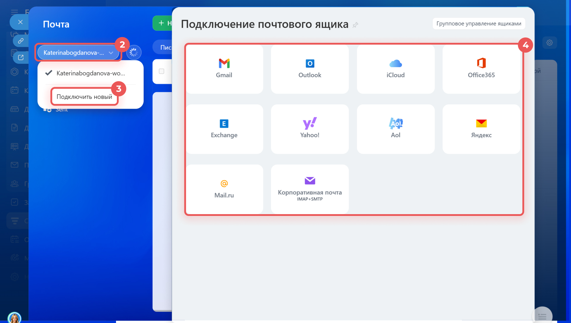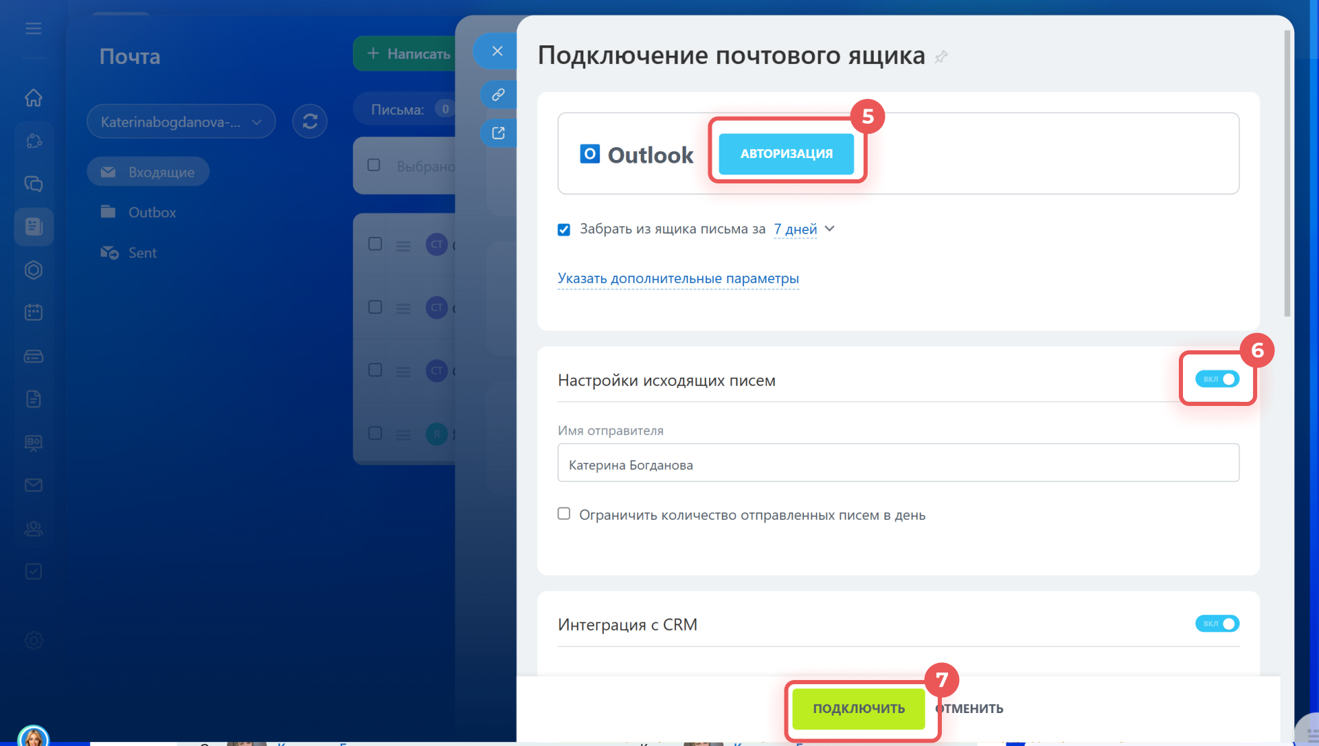 Подключить почтовый ящик