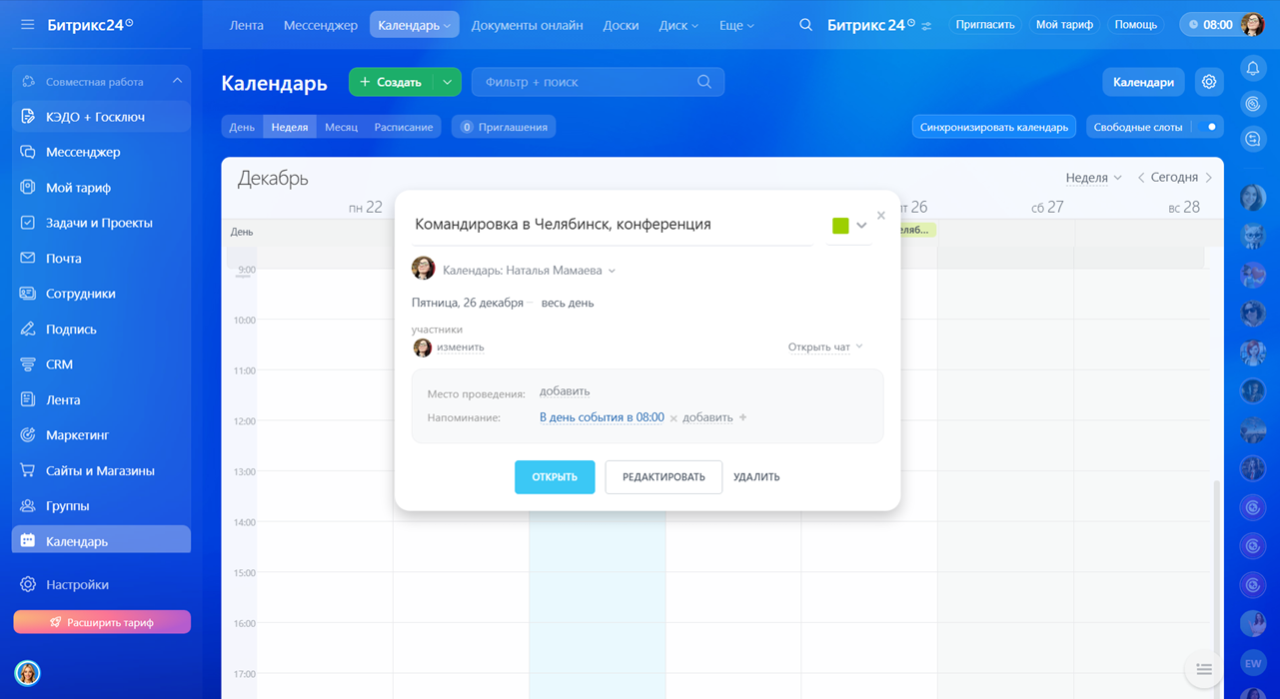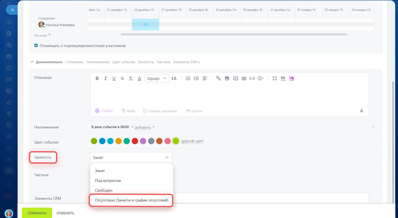Как создать событие в календаре Битрикс24