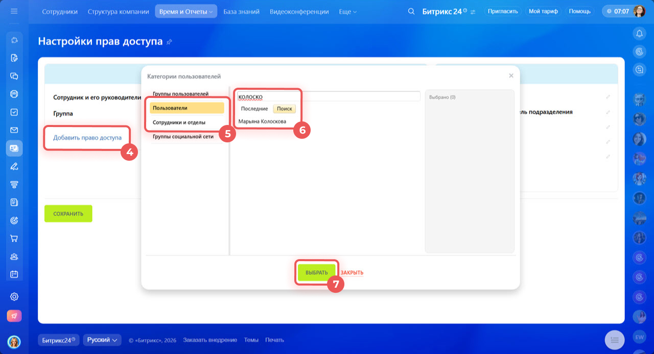 4–5. Добавьте нужных сотрудников в список и сохраните изменения.