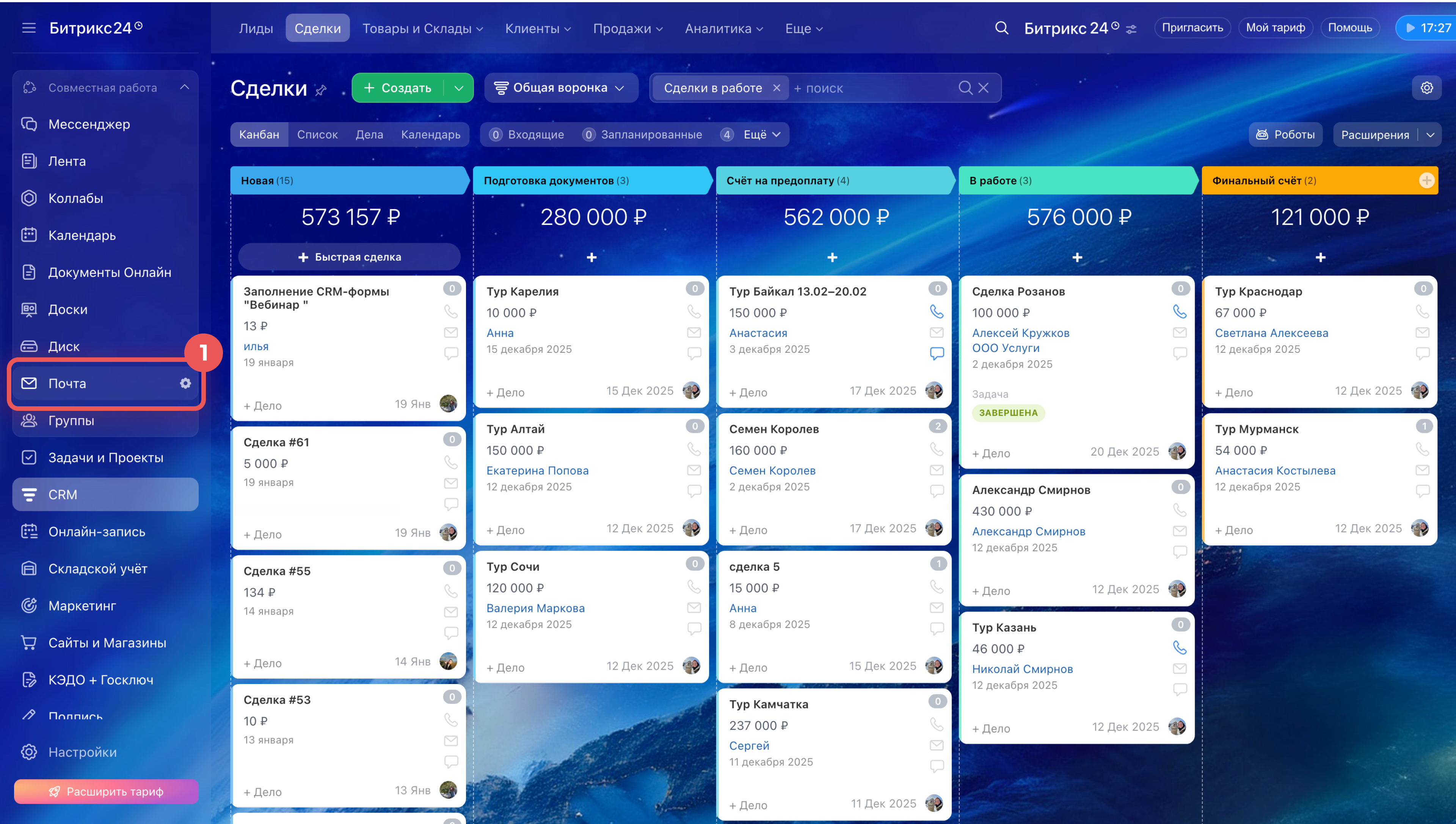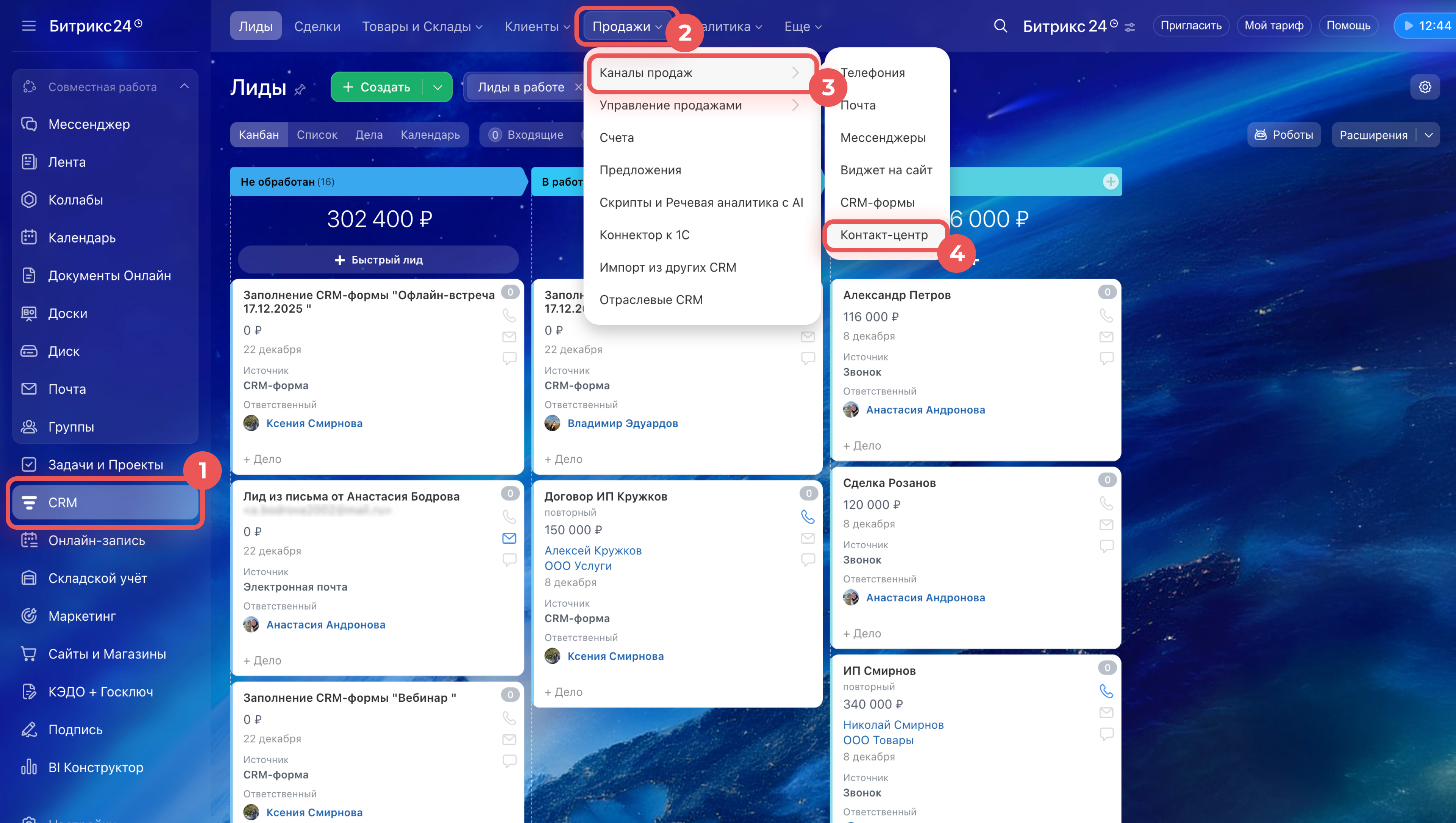 1–4. Перейдите в CRM > Продажи > Каналы продаж > Контакт-центр.
