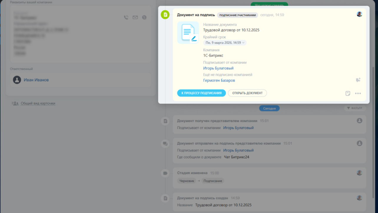 Подписание документов в Битрикс24 КЭДО представителем компании