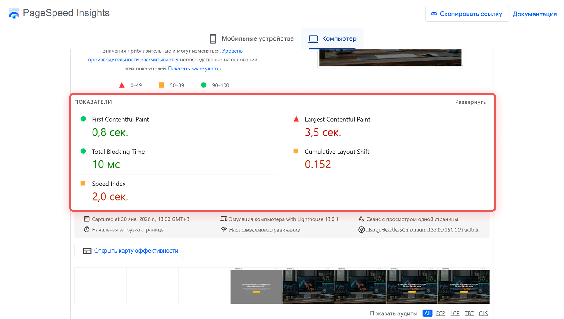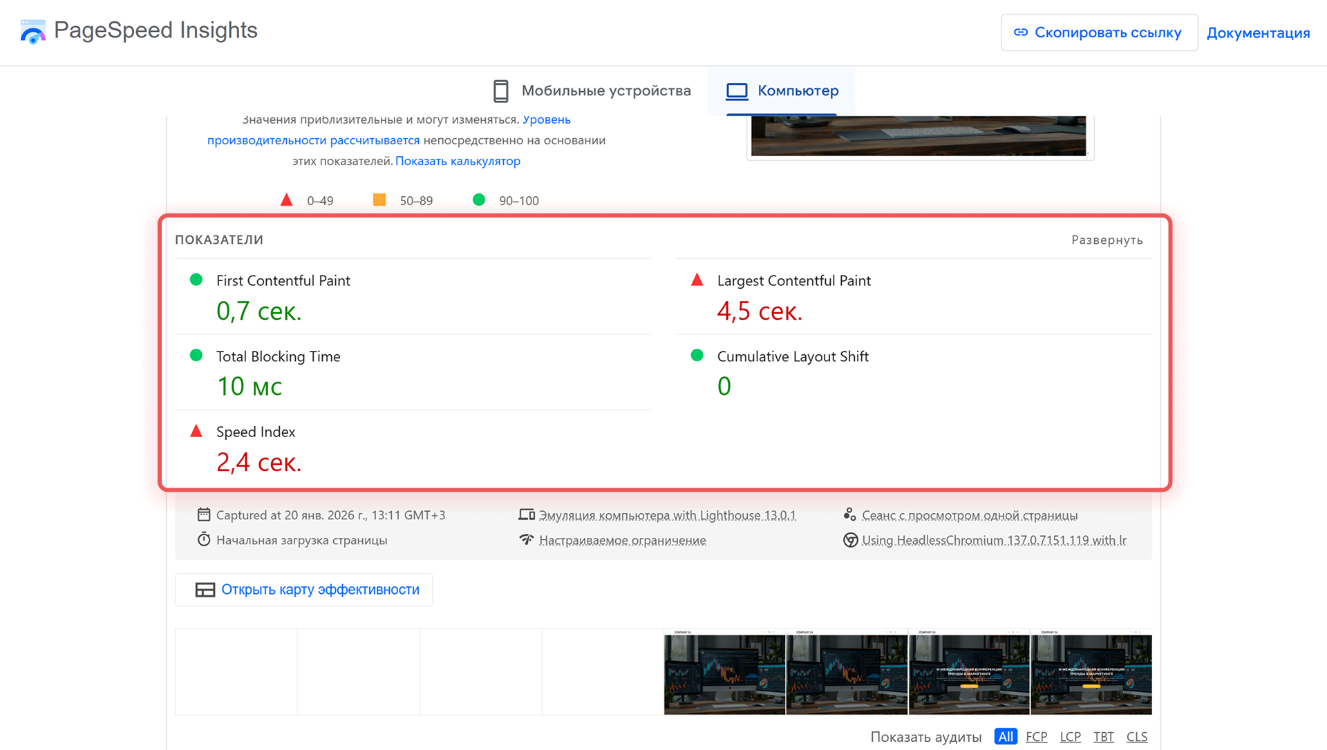 Оценить скорость работы сайта