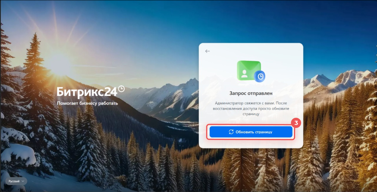 3. Дождитесь, пока администратор отключит защиту и обновите страницу входа. После этого вы автоматически войдете в Битрикс24.