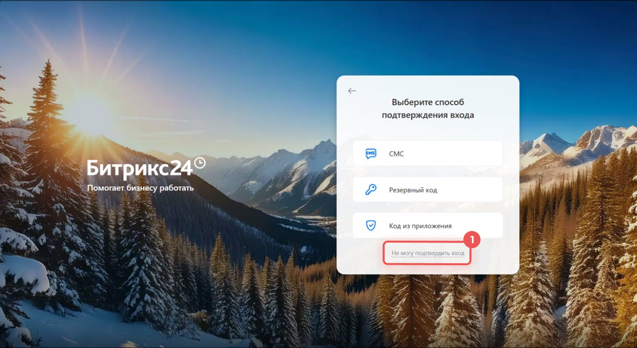 Если у вас включена новая двухфакторная аутентификация, вход в Битрикс24 нужно подтвердить через мобильное приложение. Если вы потеряли телефон, сменили устройство или не можете открыть приложение, доступ можно восстановить другими способами.
