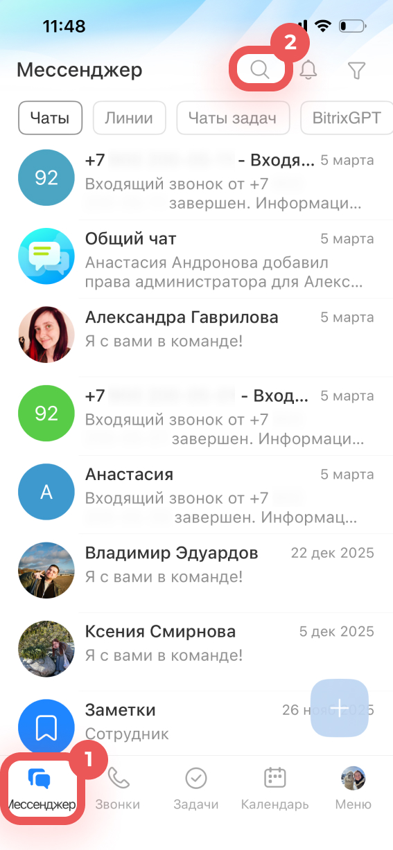 Найти коллегу. Перейдите на вкладку Мессенджер в левом нижнем углу. Чтобы найти сотрудника, нажмите на лупу.