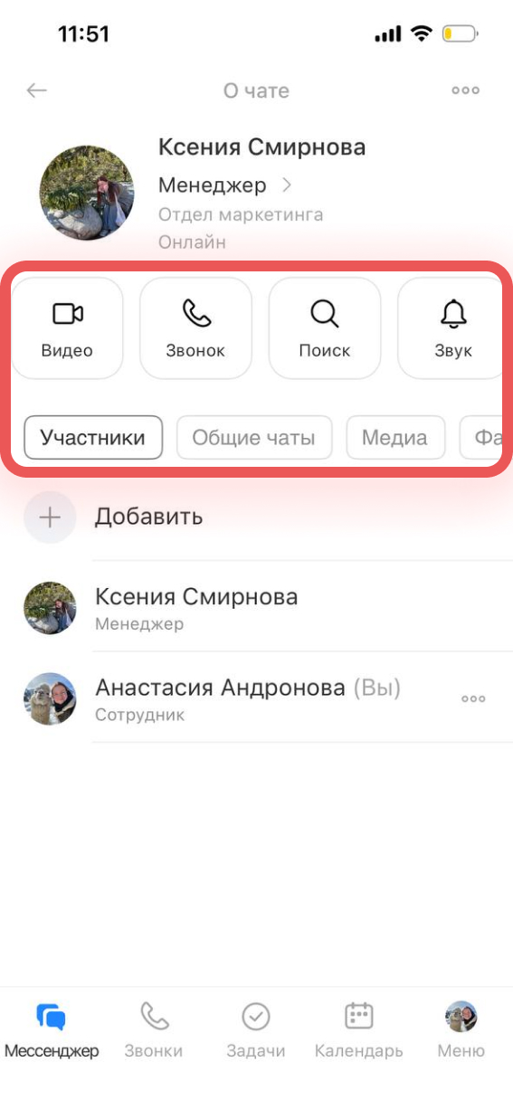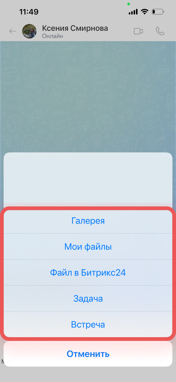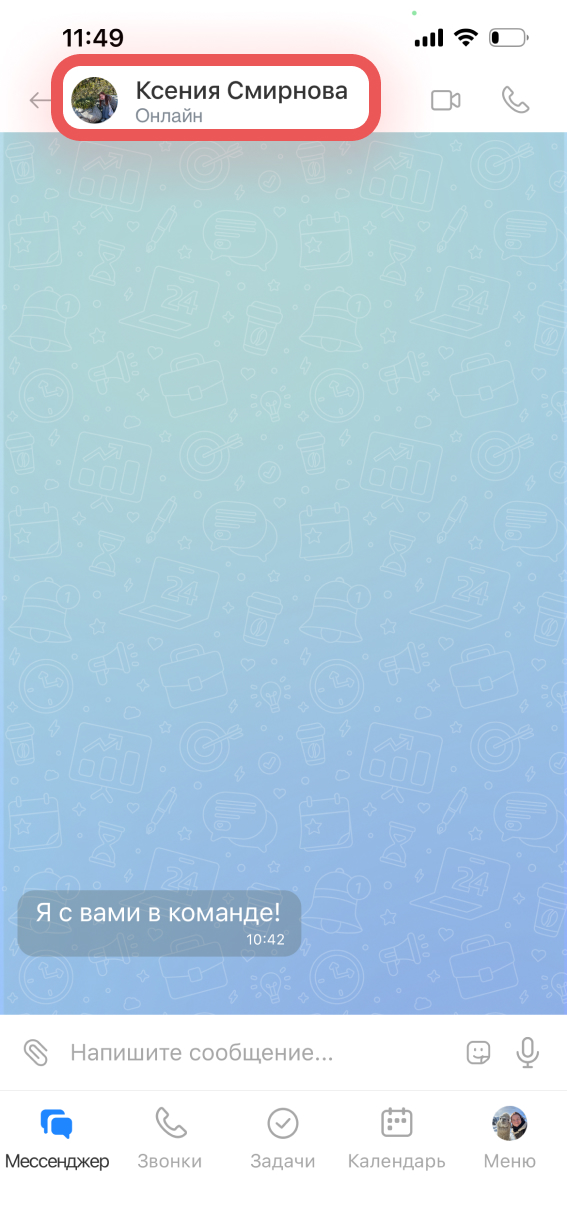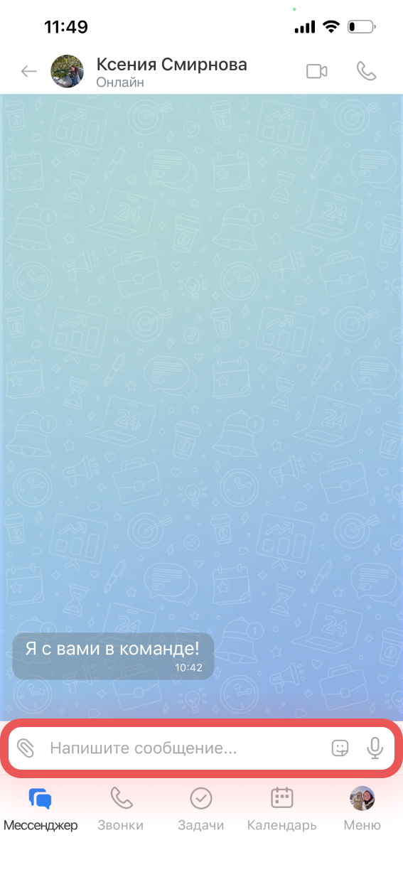 В мобильном приложении Битрикс24 можно написать сообщение, позвонить, поставить задачу или назначить встречу сразу из чата с коллегой — не переключаясь между разделами.