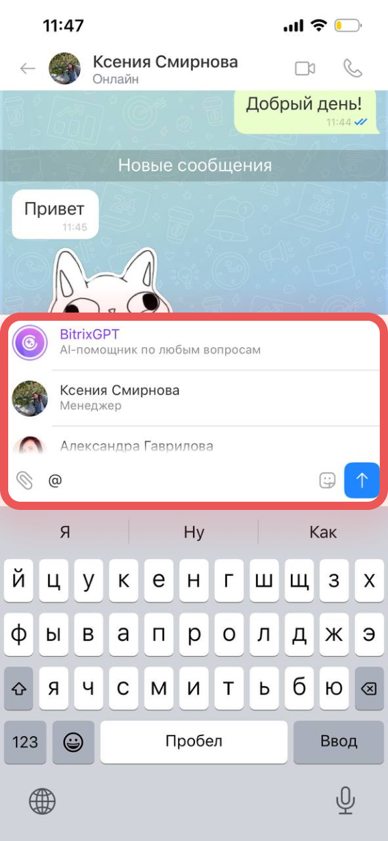 Также можно упомянуть BitrixGPT и задать ему вопрос прямо в переписке.
