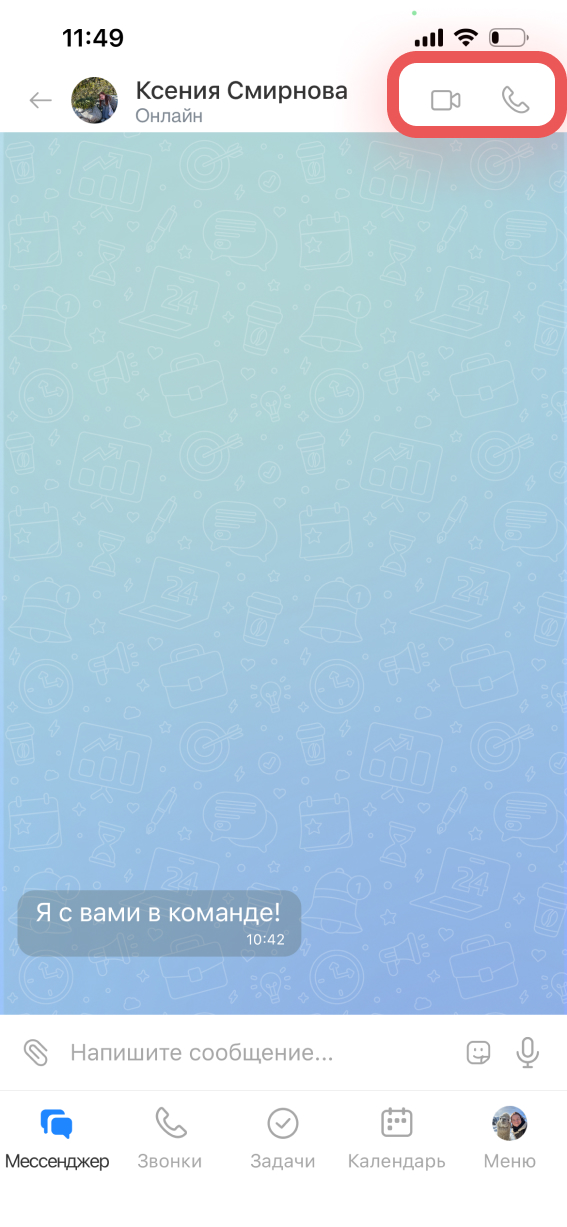 Нажмите на значок звонка или видеозвонка.