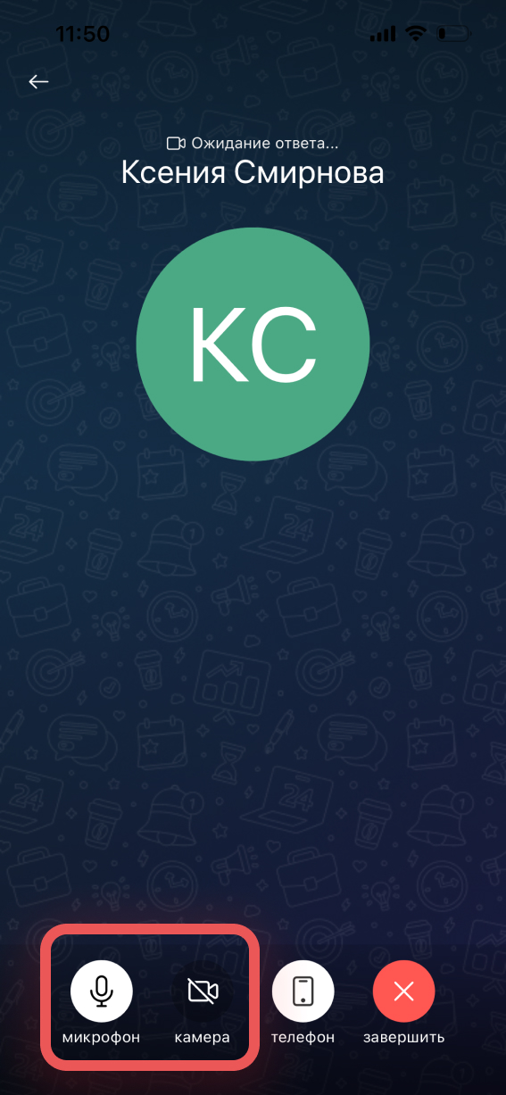 Во время звонка можно включить или выключить камеру и микрофон.
