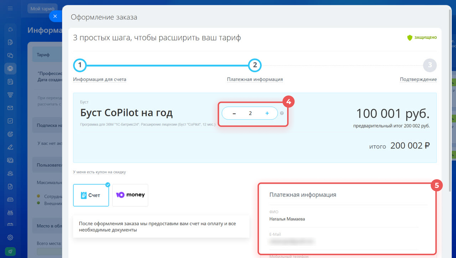 4–5. Укажите количество бустов, оформите и оплатите заказ.