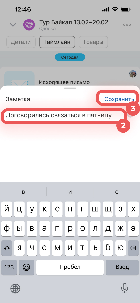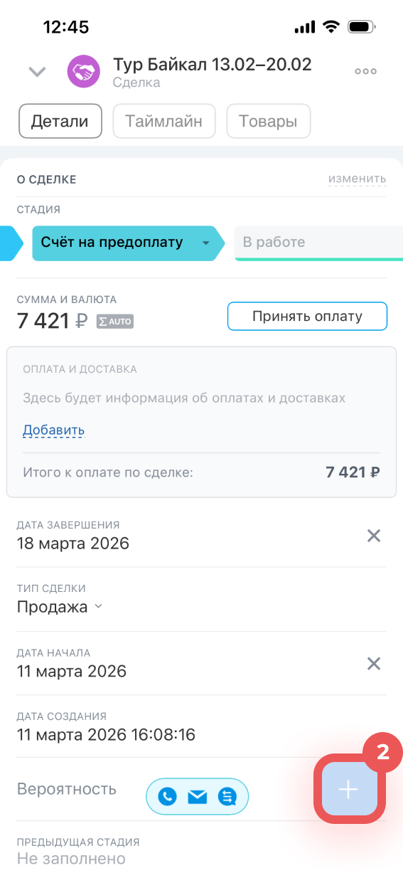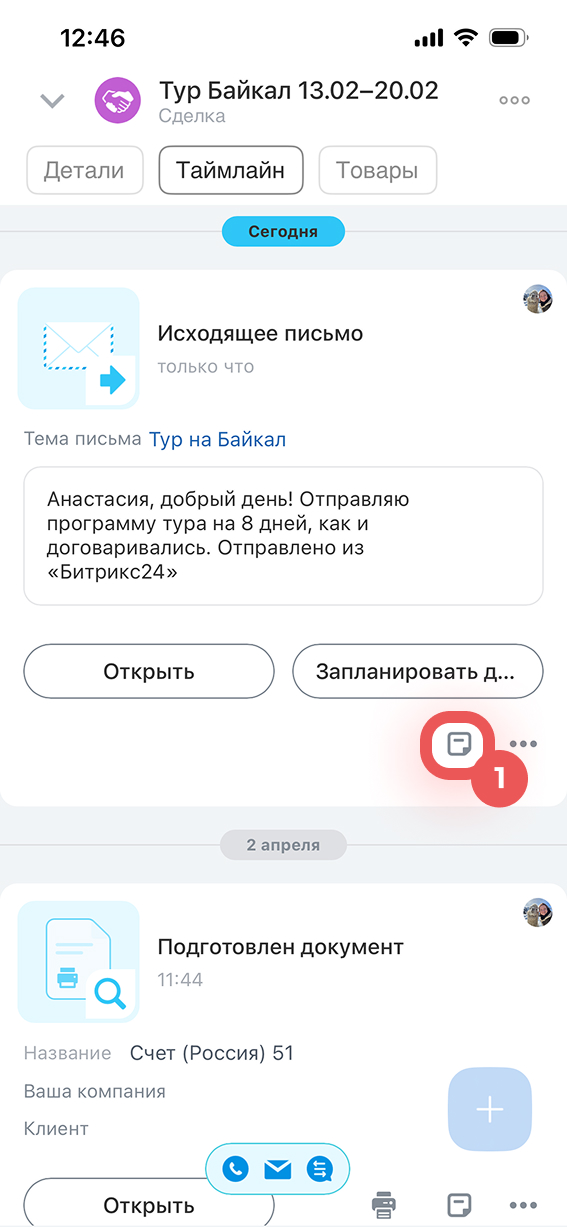 Этот способ удобен, если вы уже работаете с карточкой и хотите видеть всю историю общения с клиентом.