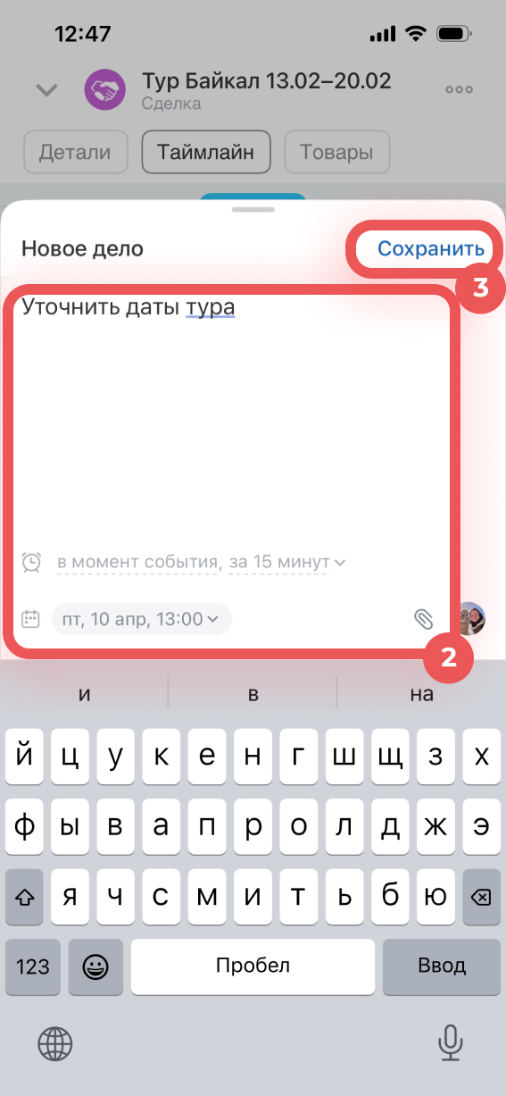 2–4. Укажите, что нужно сделать, и задайте дедлайн. Затем нажмите Сохранить.