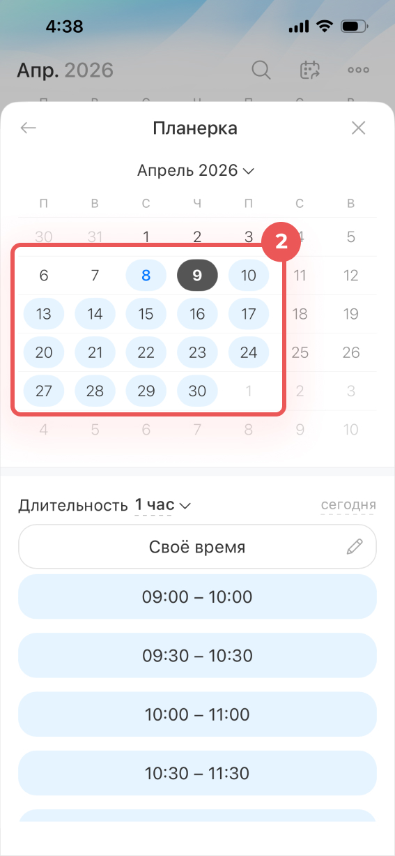 2. Выберите дату в календаре.